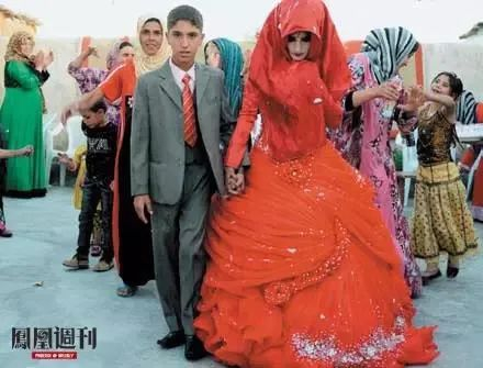 伊拉克撒拉丁省首府提克里特,一对未成年“夫妇”。图片来源:凤凰周刊联合国儿童基金会发表的一份报告称,世界各地有数百万女童被迫提早结婚。