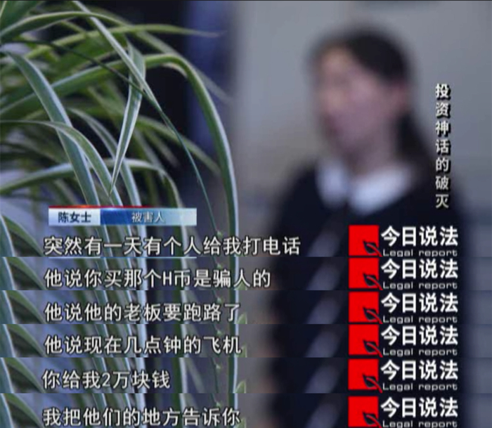 经过调查,警方很快在四川省成都市抓获了2名犯罪嫌疑人,两人承认所谓H币投资的确是骗局,但他们只是普通职工,这场骗局背后存在一个规模巨大的诈骗集团。顺着这条线索,越来越多的被害人也牵连到这场骗局中。