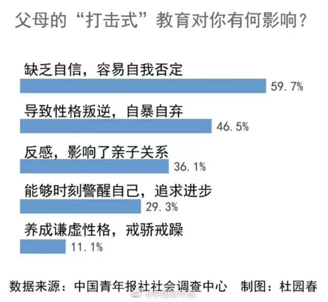 10月28日,中国青年报调查显示,九成受访青年曾遭到父母的打击式教育,并给自己的成长带来一系列影响。