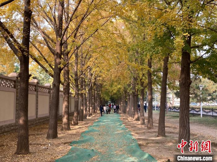 位于北京市东城区的新中街城市森林公园是北京园林绿化增彩延绿科技创新工程的示范区之一。金秋时节,公园内的银杏满树金黄,火红的元宝枫和银红槭与树下依然翠绿的崂峪苔草等地被植物组成多彩画面,吸引市民前来游玩。