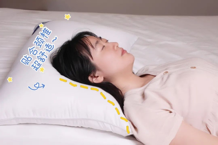 柔软蓬松的枕芯,让颈椎跟枕头贴得很紧密,颈椎不悬空,睡起来自然就会很舒服。