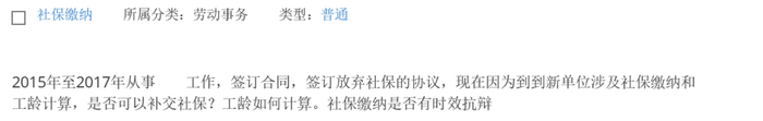2015年至2017年工作期间,签订合同,签订放弃社保的协议,现在到新单位,涉及社保缴纳和工龄计算,是否可以补交社保?工龄如何计算?有关社保缴纳的仲裁申请,是否有时效?