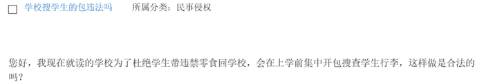 您好,我现在就读的学校为了杜绝学生带违禁零食回学校,会在上学前集中开包搜查学生行李,这样做是合法的吗?