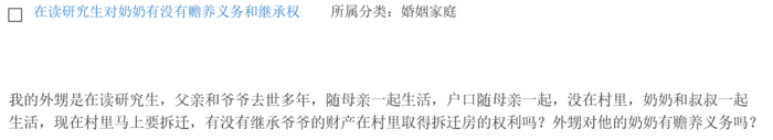 我的外甥是在读研究生,他父亲和爷爷去世多年,他随母亲一起生活,户口也随母亲一起,没在村里。他的奶奶和叔叔一起生活,现在村里马上要拆迁,外甥能通过继承爷爷的财产,获得拆迁房吗?外甥对他的奶奶有赡养义务吗?