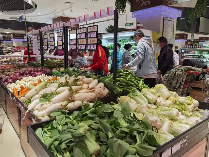 就价格方面亚欧超市也进行了管控。“对卖场的价格我们进行了管控。其中,米面油价格和疫情前保持基本一致,蔬菜的价格比去年同期还要略低。所以说价格是保持持续稳定的。”郑丽芳说。