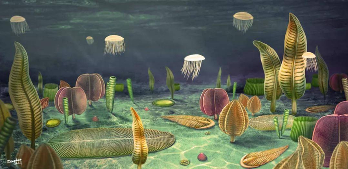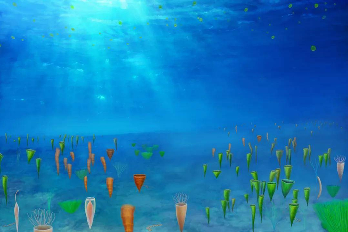 埃迪卡拉生物群复原图(南京古生物所:杨定华绘制)