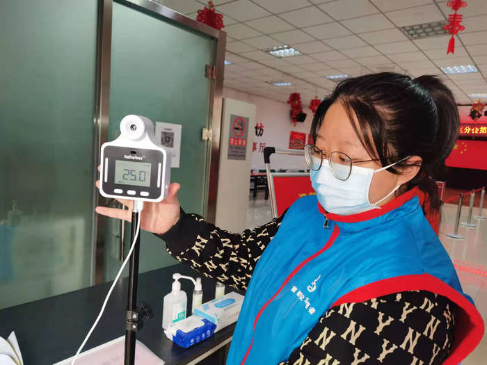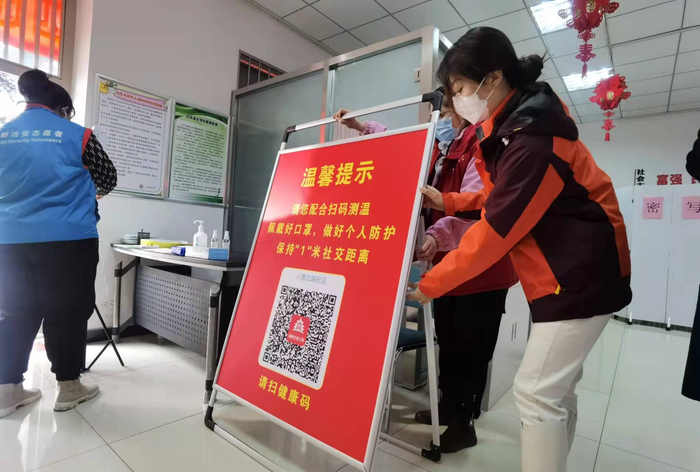 走进第四选区八角北路投票站,现场分为扫码登记区、入口处、解说处、发票处、写票处、代写处、密写处、票箱、出口处等功能明确的区域,尤其还在入口处设置了排队等候一米线、有专门工作人员进行体温监测和扫码登记,循环播放防疫广播号召居民提高个人防护能力。