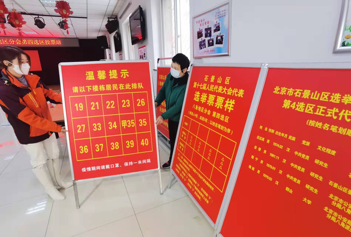 11月4日,石景山区八角街道为北京区乡镇人大换届选举投票日准备的12个投票站布置完成。