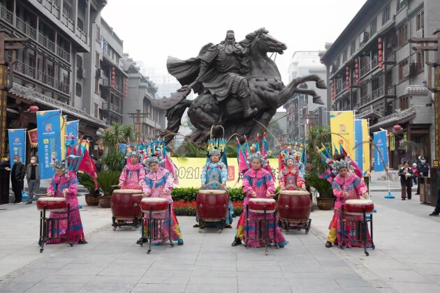 开幕式前,参加开幕式的嘉宾还前往池神庙三大殿前观看了非遗文化表演。