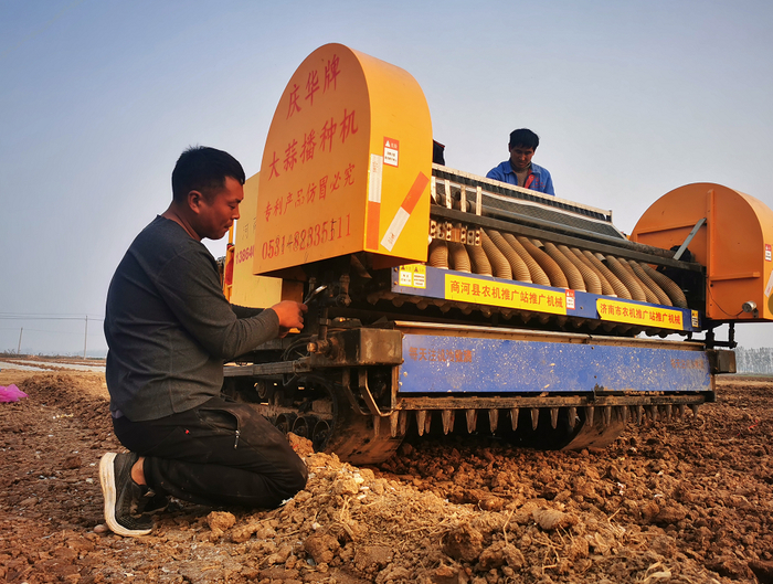 济南市商河县白桥镇,四水环绕,土地肥沃,有着悠久的大蒜种植历史。受气候影响,今年白桥镇的大蒜播种稍有延期,连日来的好天气,让白桥镇迎来了大蒜抢种期。