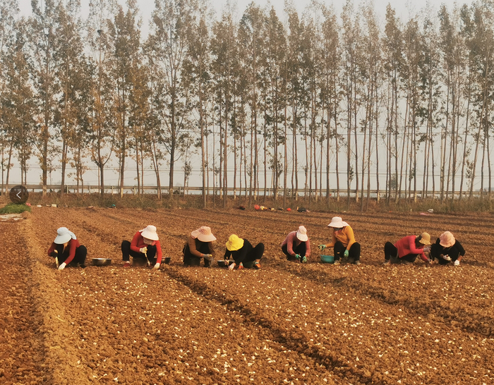 白桥镇,地处济南市商河县东南部,有着悠久的大蒜种植历史,被誉为“中国大蒜第一镇”。连日来的晴好天气,让白桥镇蒜农们迎来抢种的重要时机,地头上的栽蒜工人头攒动,远处地头上早播的蒜种已经冒出了小苗,绿意一片。