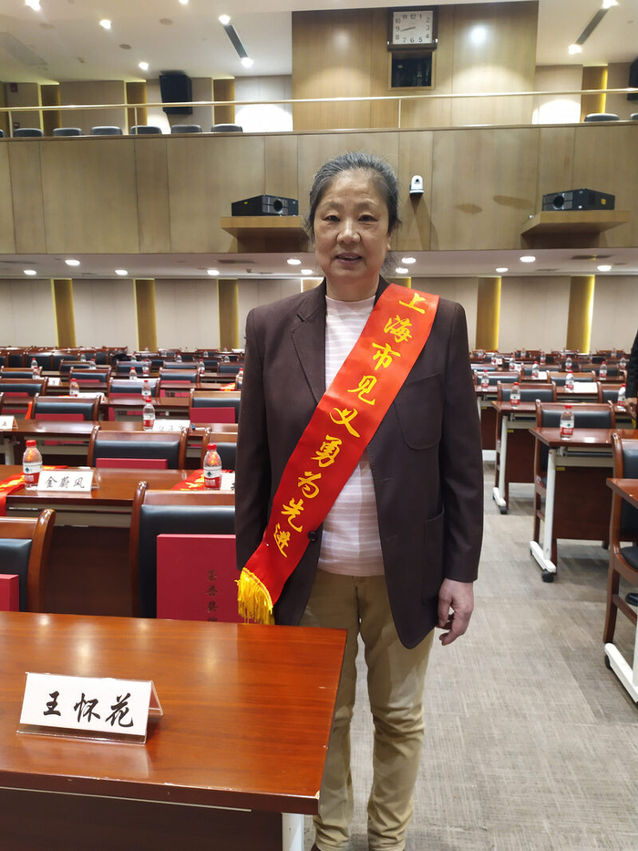 王怀花,女,汉族,1954年生,上海市浦东新区南码头路街道银河小区居民。年逾花甲的王怀花不顾个人安危,为救邻居赤手空拳勇斗醉酒行凶者,协助民警将其擒获。她的左手被割伤,伤口被缝十几针。她在危急时刻临危不惧、挺身而出,弘扬社会正气,被邻里誉为守望相助的“侠女奶奶”。