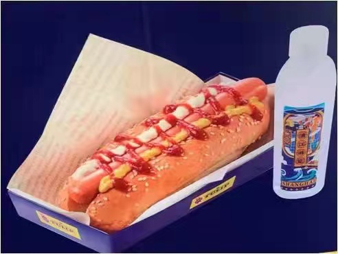此外,浦江游览进博会专线游船为每位游客提供特色简餐。除了美味的热狗,还有其他半自助点心小吃,蒸蛋糕、蝴蝶酥、苔条、大白兔奶糖、水果等,饮料包括矿泉水、热腾腾的红茶等提供。