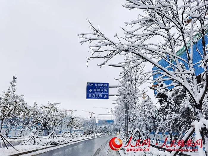 雪中的雄安容东片区街区。刘向阳摄雪中的雄安金湖公园。刘向阳摄