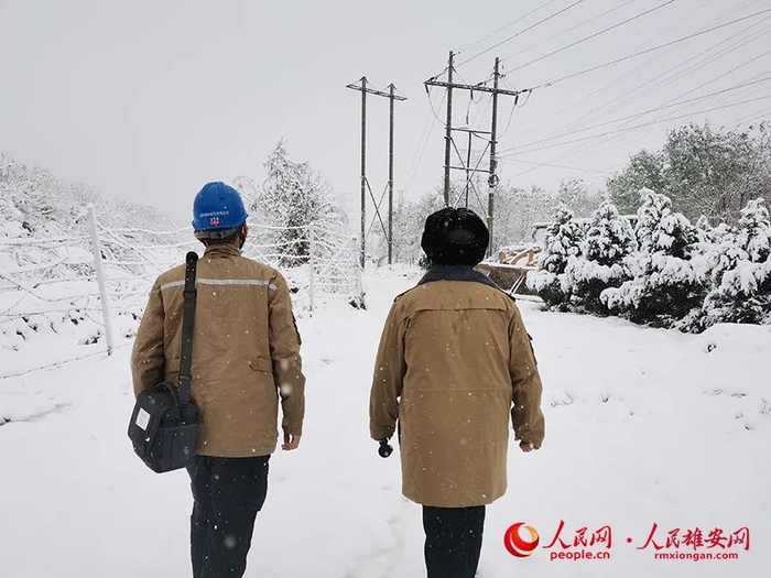 11月7日,国网雄安新区供电公司输电专业班组对220kV容剧线、易剧线进行雪中特巡,观察导线覆冰、舞动情况,保障新区电网安全稳定运行。国网雄安新区供电公司供图