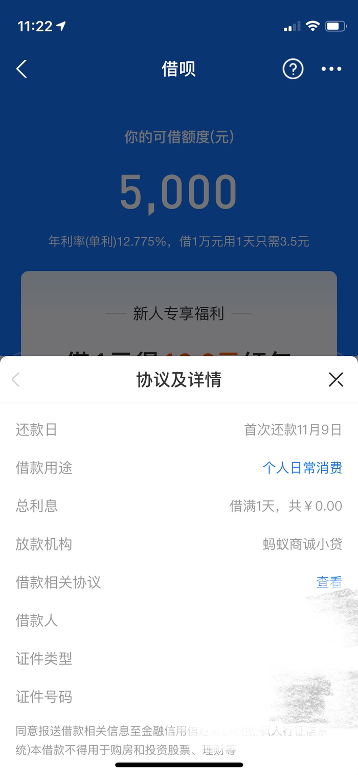 在进入借款页面后,在“借款协议及详情”中,可看到总利息、放款机构、借款相关协议等信息。同时,不同用户的资金方和贷款年利率也有所不同。