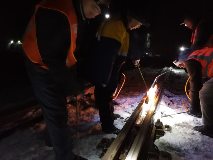 11月8日凌晨,北京高铁工务段职工对京津城际军粮城站道岔关键部位进行除冰作业(中国铁路北京局集团有限公司供图,央广网发)