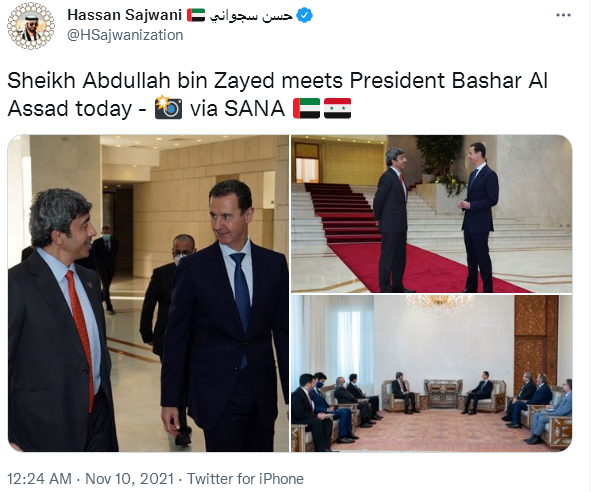 原标题:阿联酋外长访问叙利亚见阿萨德,美国有人火了……