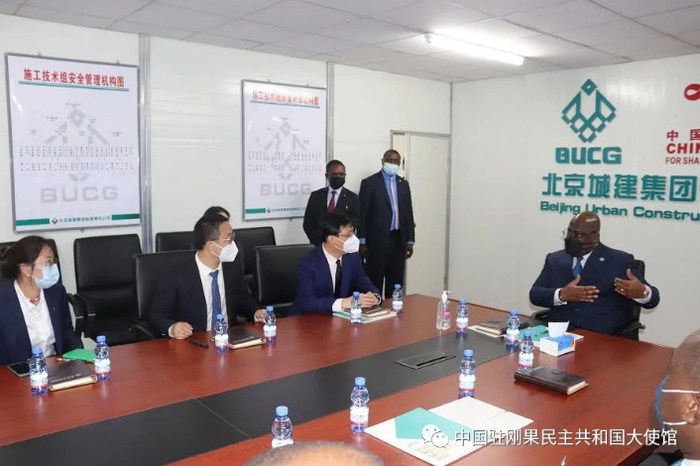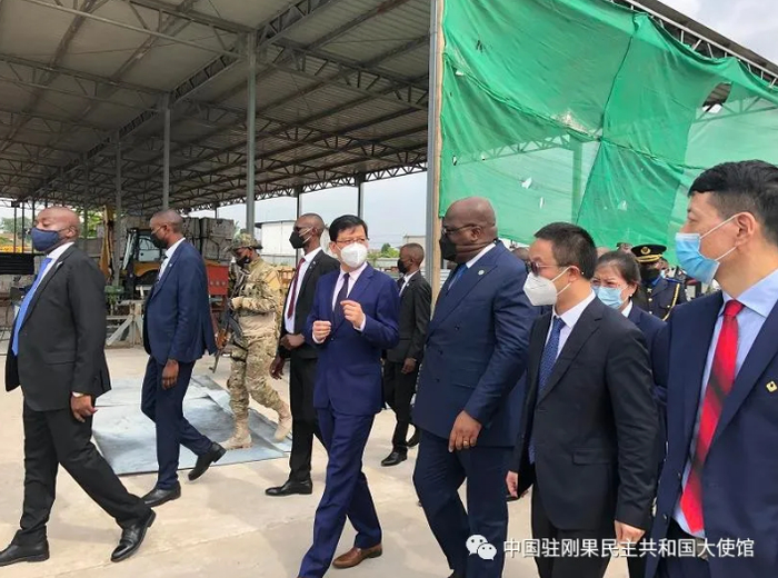 11月8日,刚果(金)总统齐塞克迪率基础设施和公共工程国务部长等政府官员,前往中国政府援建的金沙萨中部非洲文化艺术中心项目工地视察。驻刚果(金)大使朱京陪同。