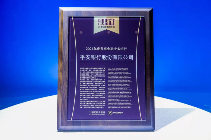 原标题:平安银行获评“2021年度普惠金融业务银行” 小微综合解决方案获认可