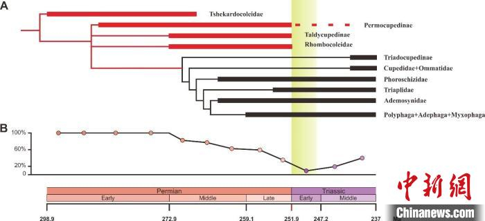早二叠世至中三叠世甲虫多样性变化曲线。 研究团队 供图