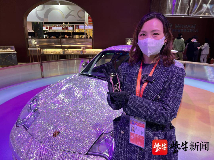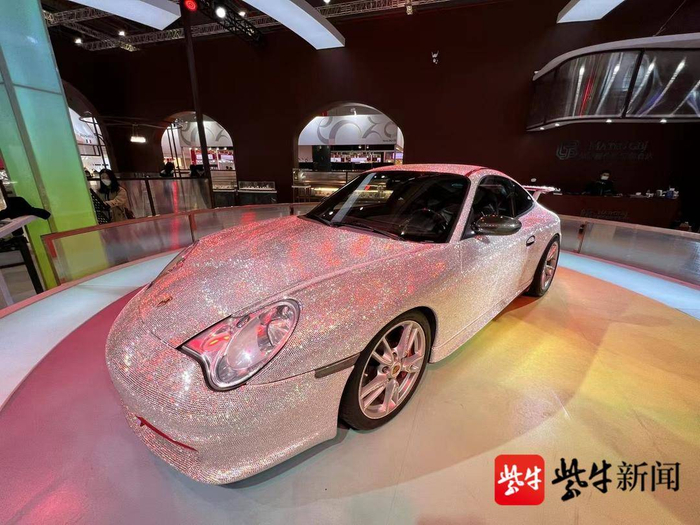 11月5日-10日,第四届进口博览会在上海国家会展中心举行。镶了40万颗宝石的跑车绝对会让你惊呼“闪瞎眼”!扬子晚报/紫牛新闻记者在进博会消费品展区珠宝馆看到,一辆保时捷跑车浑身布满了亮闪的宝石,在灯光的照射下尤其闪耀。这是该馆展陈单位体积最大的珠宝展品,是“珠宝馆”镇馆之宝,也是它的中国首秀。在展台负责人的盛情邀请下,我们荣幸地成为全国首个进车试驾体验的媒体。