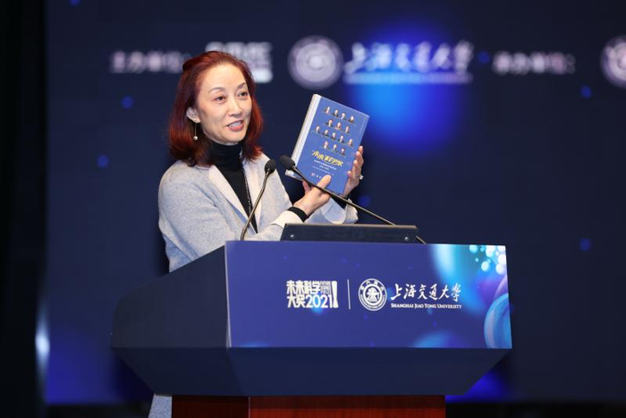 武红女士将未来论坛出版的书籍赠与现场提问的部分学生,寄语交大学子胸怀祖国,为社会发展贡献自己的力量。