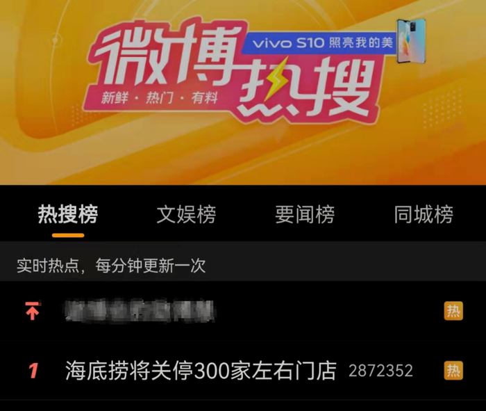 因大规模闭店上热搜的海底捞。