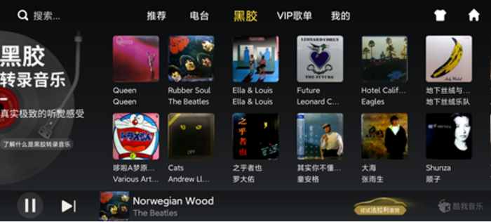 ▲酷我黑胶音乐收听页面▲