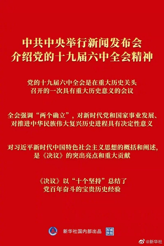 原标题:权威快报丨中共中央举行新闻发布会介绍党的十九届六中全会精神