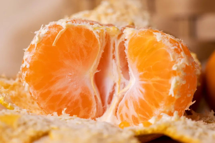 涌泉蜜桔的桔子瓣之间的薄膜堪称“薄如蝉翼”,桔络也是又鲜又酥,一点儿不会在嘴里留渣!
