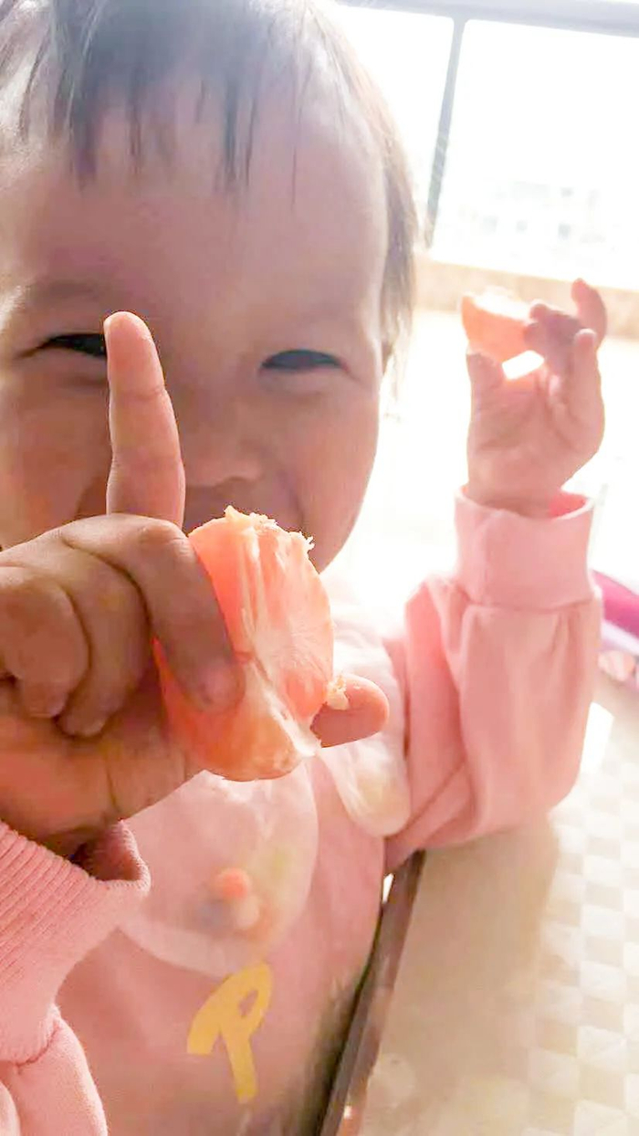 ▲果农家的小朋友太可爱了,一直在吃蜜桔!