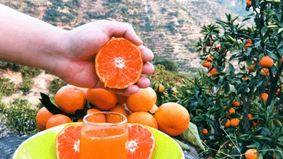 桔子的汁水特别饱满,可以当场做“现榨果汁”,感觉自己的口水都要跟着流一地了!