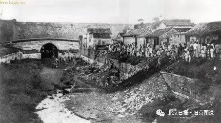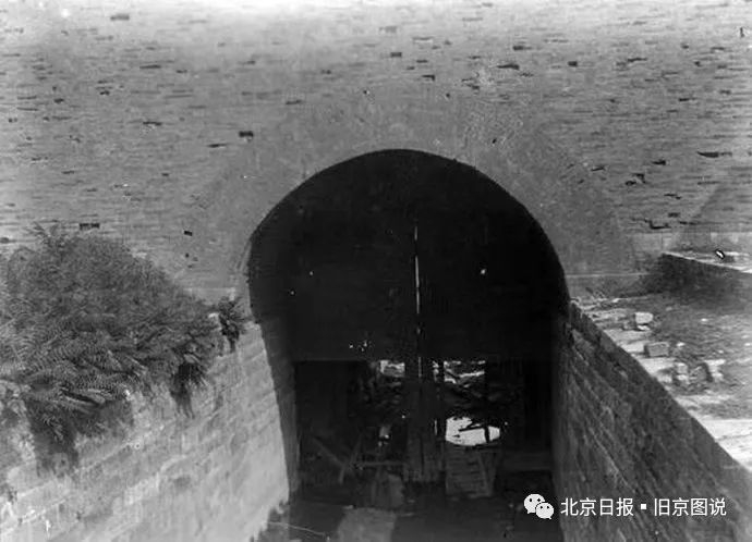 铁路铺通了,本来老百姓进出崇文门走的瓮城西侧的城门洞被改造成了铁路涵洞,那进出崇文门的老百姓走哪里呢,英国人让工人们在崇文门瓮城的南侧,就是原来箭楼(箭楼是被英国人炸塌的)的下面把城台扒了个豁口,又砌成了城门洞,用于老百姓通行。