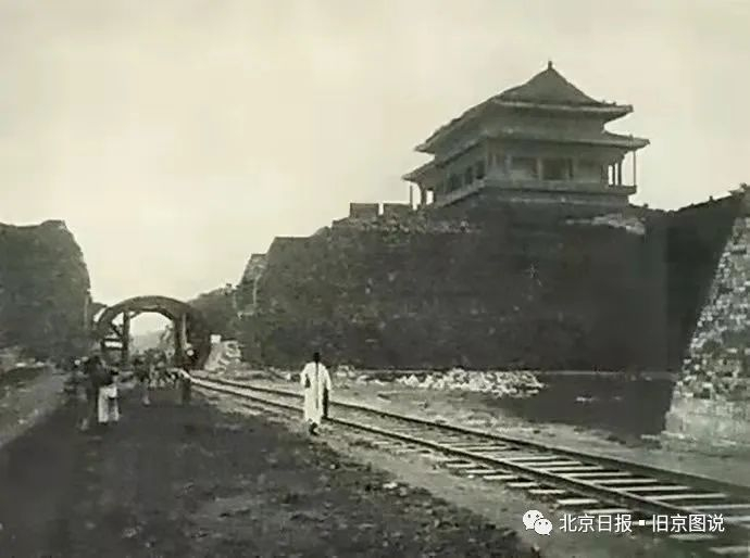 铁路经过崇文门就铺到了东郊民巷的南侧,为了方便居住在东郊民巷的外国人乘坐火车,他们把八国联军攻打北京城时首先进入内城的那个水关,就是正阳门东侧的水关,改造成了他们出内城上火车的通道,这也是北京内城的城墙上,第一个被拆改之处。