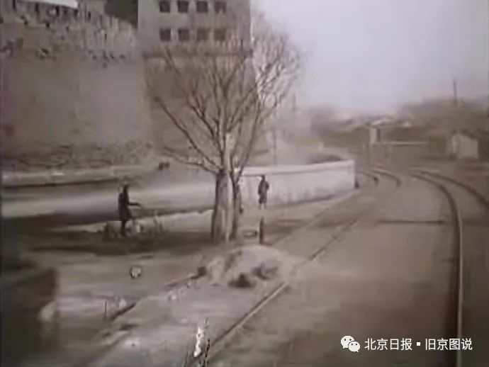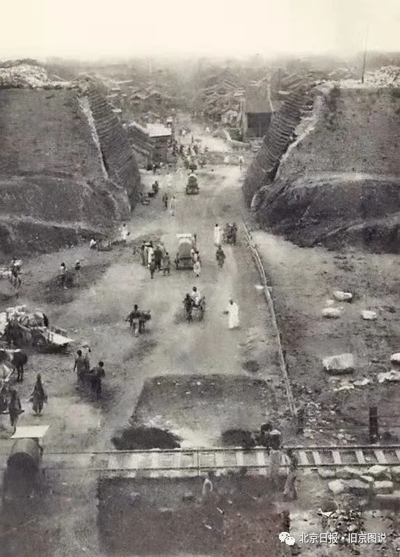 照片显示,崇文门的瓮城已经扒开了,下面的铁路也铺上了。