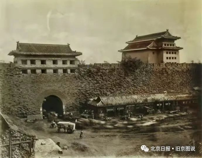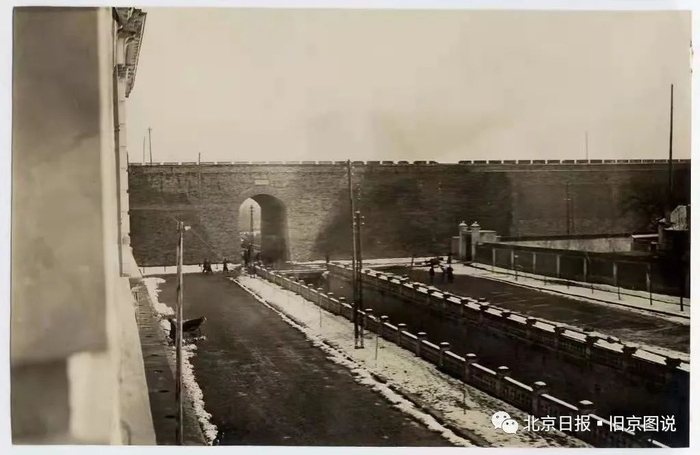 当时在外城的城墙上是扒开了豁口,这是后来从西向东拍的照片,豁口弄成了两扇门。