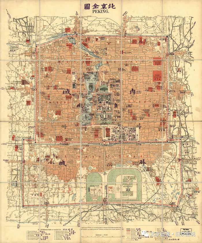 这是1901年外国人在北京绘制的地图。文中提到的几条铁路,都在地图上画得清清楚楚。这张地图比较难得,对于英国人把铁路修到天坛是个真实的记录。在此之前的1900年和在次之后的1902年以后绘制的地图上,都没有永定门到天坛这段铁路的踪迹。