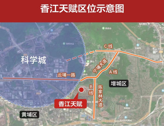 作为与黄埔区“一路之隔”的楼盘,香江天赋在区域深度融合上,占据天然优势。未来,从项目家门口的宁埔大道出发,一脚油门直达科学城,全面融入科学城发展利好。