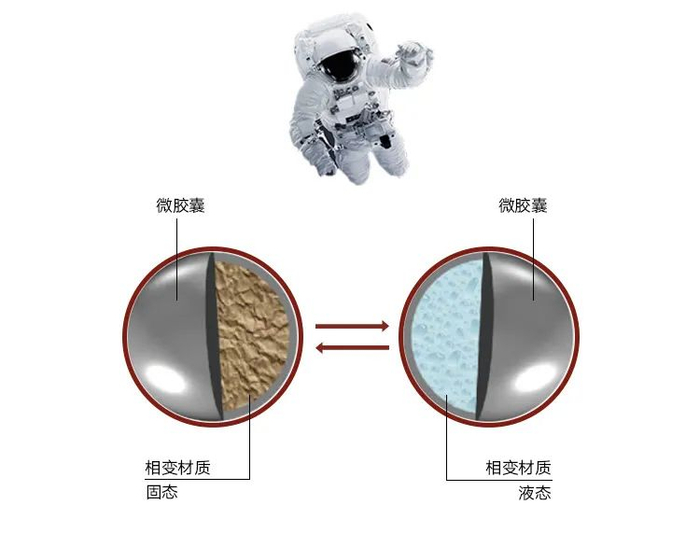 一默受宇航服的启发,选择了PCM相变控温纤维填充内芯,PCM材料可以在温度基本恒定的情况下,改变自身的状态并吸收或释放热量。