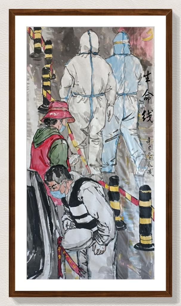 40岁的王永晟是宁夏固原市原州区文化馆副馆长,有着20多年的画龄。自新冠肺炎疫情暴发以来,看着人们在抗疫一线奔忙,他说,深受触动,由此开始抗疫画集《最美天使》的创作,《生命线》就是其中作品之一。