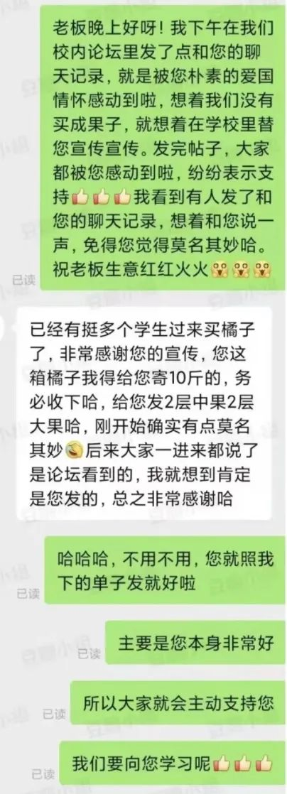 我也遇到过类似的事情!以前有一次买罐头吃,地址写在学校,后来罐头寄过来的时候箱子上写着大学生是国家栋梁类似这样的话,具体的不记得了,但是当时真的特别感动