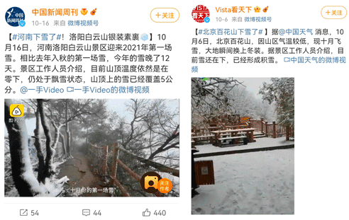 10月初,北京房山就迎来了第一场雪,就连在中原的河南都开始下雪,今年的雪打的人们措手不及,都刷上了热搜。