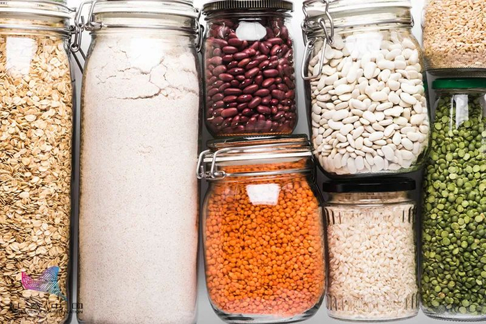 米面粮油、干果、干粉丝等,需用干净且干燥的容器装好,放在室内阴凉、通风、干燥处,避免高温和光照。