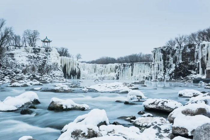 令人震撼的镜泊湖吊水楼的冰瀑是牡丹江冬季的重要景点之一。