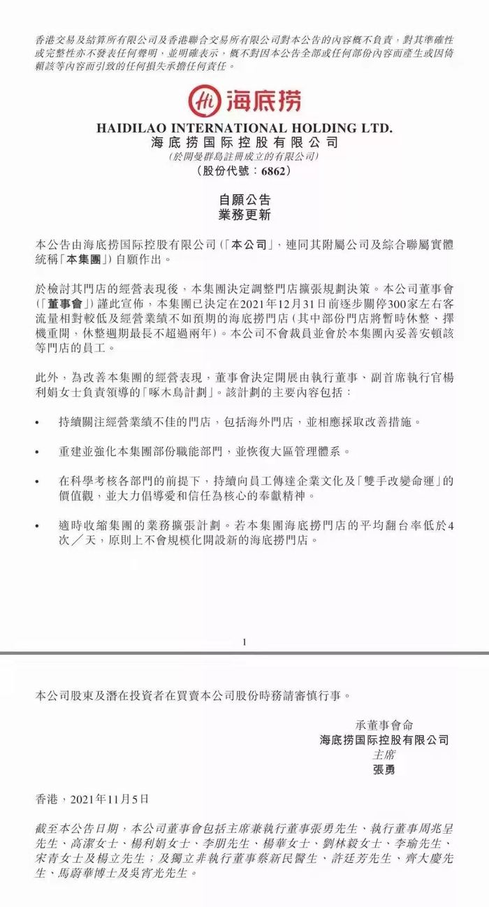 央广网北京11月16日消息 11月5日,海底捞发布了一份公告,称要在2022年元旦前,在全国关停300家左右门店。公告一出,瞬间成为行业热点,在业内引起轩然大波。随后,各路机构和行业人士纷纷对这件事表达观点。
