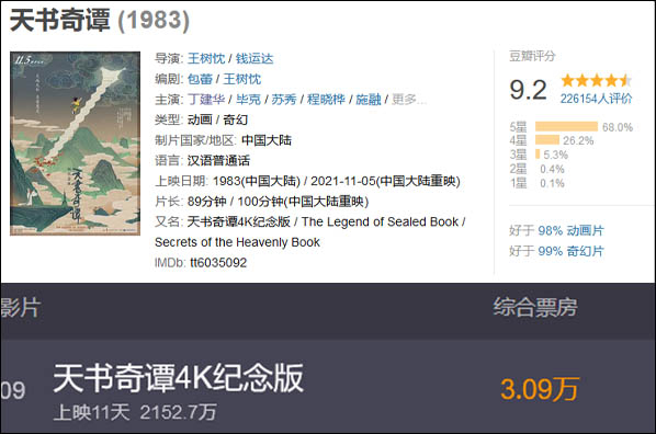 2021年11月5日,《天书奇谭4K纪念版》正式登陆院线。