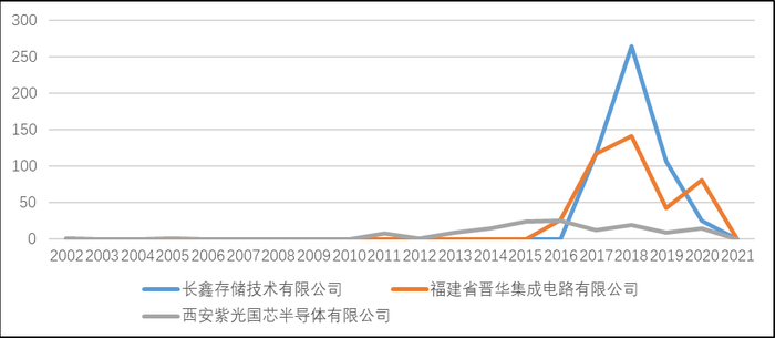 图2  国内DRAM企业年度申请趋势