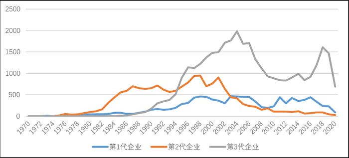 图1  三代DRAM企业专利申请量年度趋势