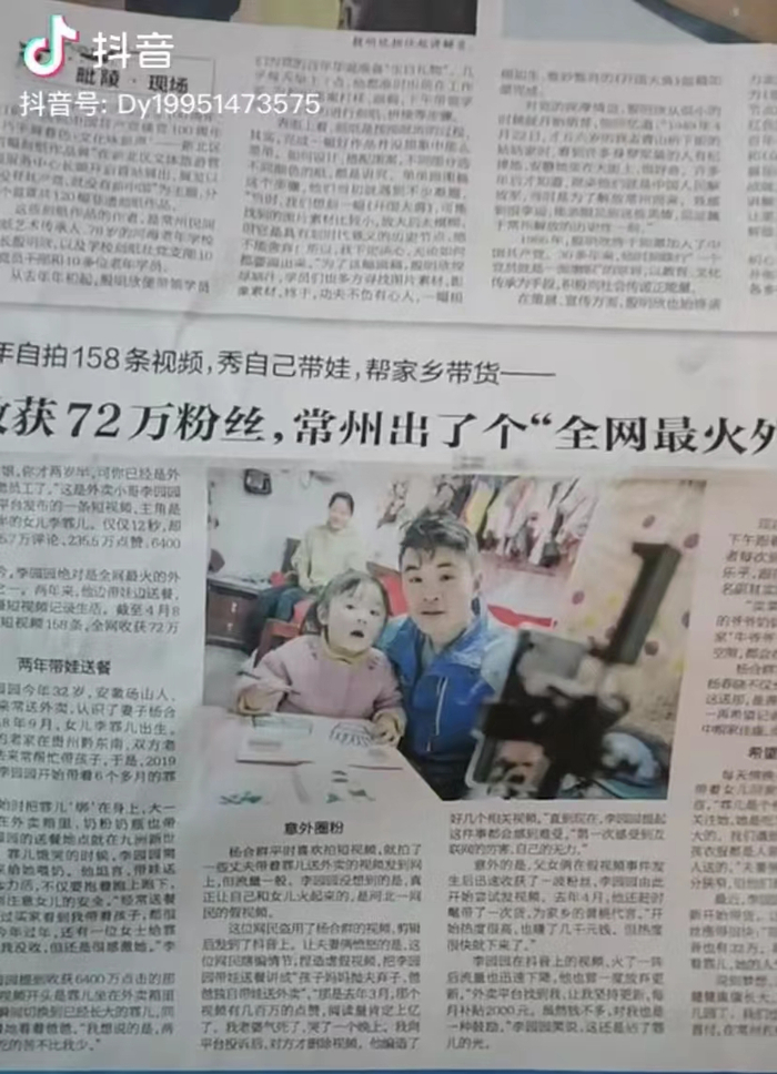 下午外卖接单太忙,李园园就将孩子交给妈妈